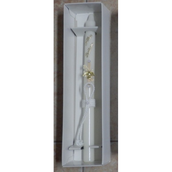 Vela de batismo decorada.