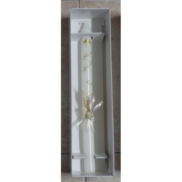 Vela de batismo decorada.