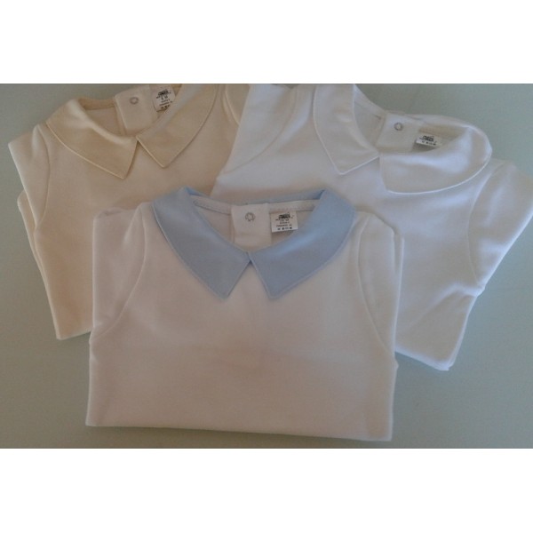 Bodys de malha cardados com gola de cor, ideais para pintar