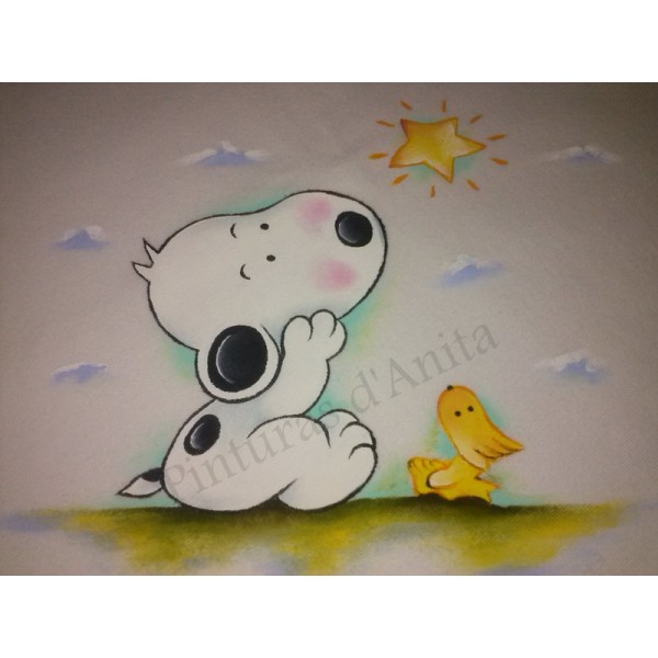Fralda de malha pintada à mão.